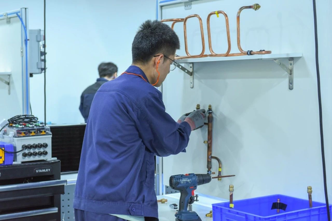 制冷与空调项目指以制冷设备的设计、制作、安装、运行、维护为主,兼顾空调设备安装与维修的竞赛项目。比赛中对选手的技能要求主要包括:制冷系统零部件的安装;管道和电缆的设计、制作、安装、焊接;制冷设备运行调试与检测;空调系统故障的检修及零部件更换;制冷剂的使用及回收等。